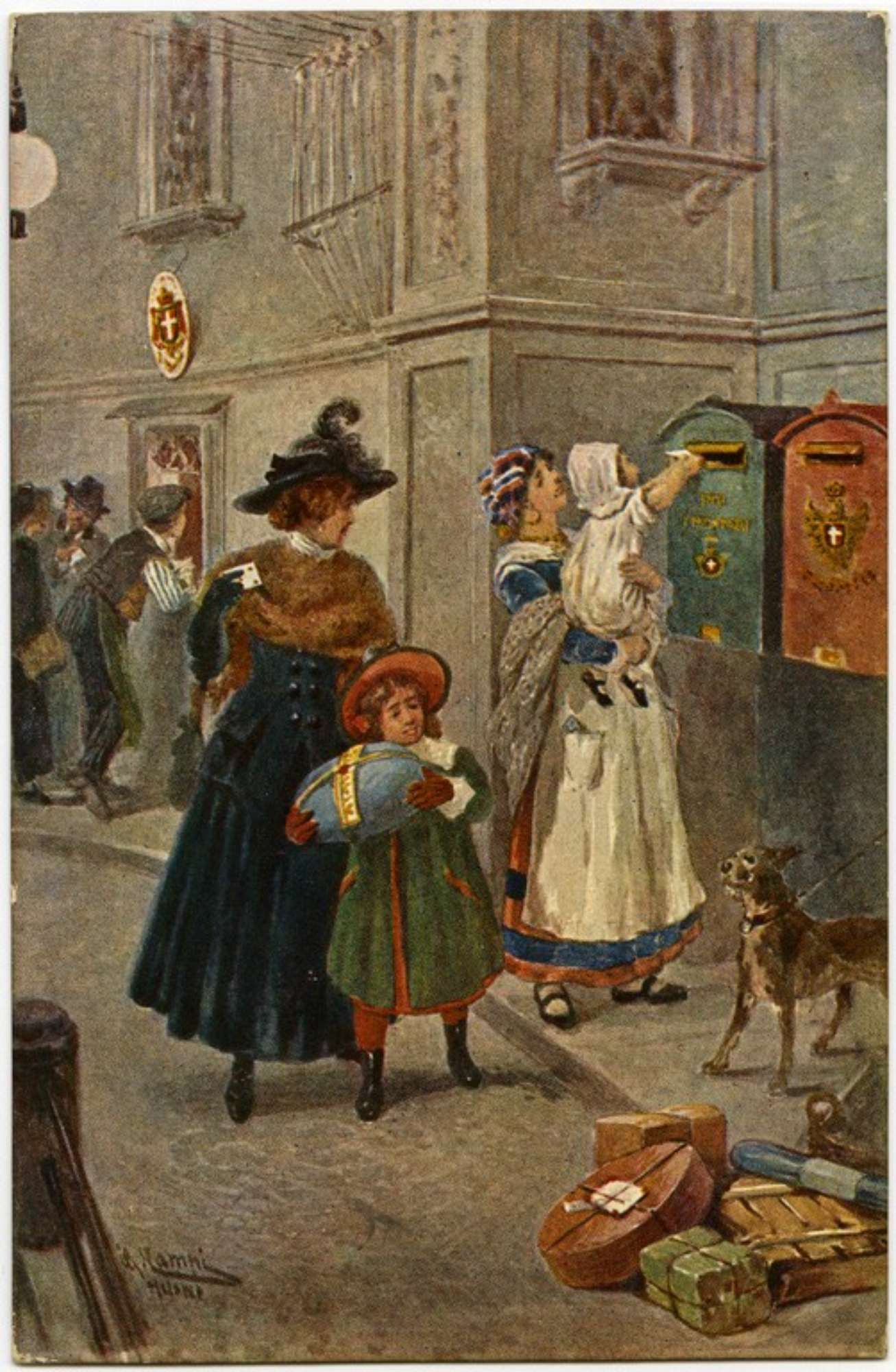 Prima guerra mondiale. Donne e bambini spediscono lettere e pacchi.