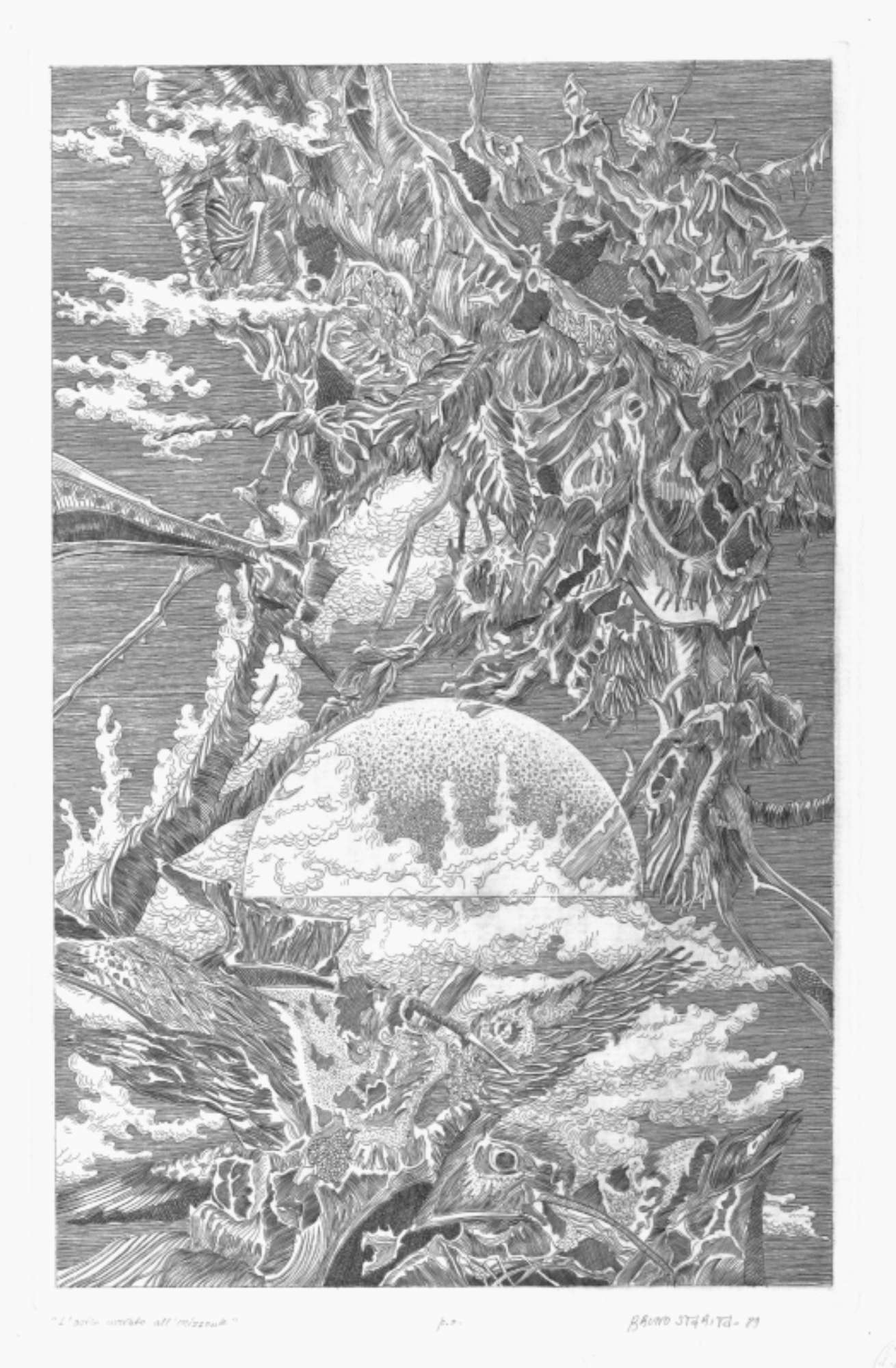 Esposta in mostra e pubblicata nel catalogo "Incisione millenovecentonovanta. Atti del Convegno di Bagnacavallo" AA.VV., con scritti di G. Trentin, E. Rambelli, P.C. Santini et al. A cura del Comune di Bagnacavallo, Bagnacavallo, 1991.