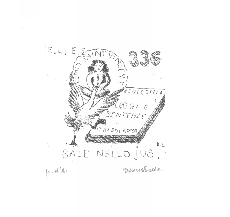 Dalla cartella "Il gioco dell'oco" ex libris – 9 acqueforti di Dolores Sella per 9 anagrammi di Esulino Sella.