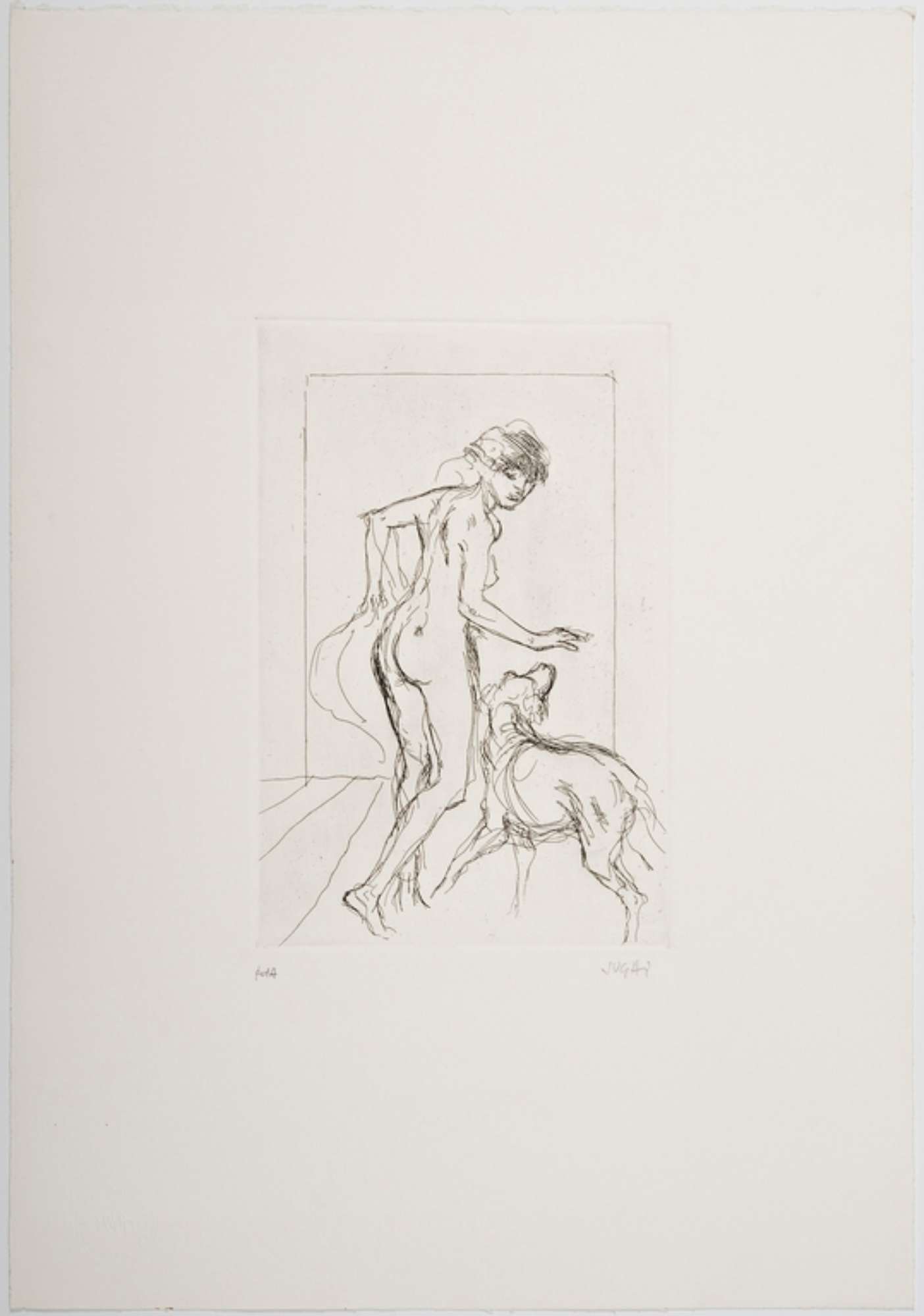 Acquaforte inserita nella cartella "Morire Verde" con sei incisioni di Ennio Calabria, Bruno Canova, Bruno Caruso, Giacomo Porzano, Alberto Sughi e Aldo Turchiaro; poesie di Fiammetta Selva e Sandro Segni, Edizioni il Bulino, Roma 1987(Archivio Sughi #4169-103/ D. Cesena 40).