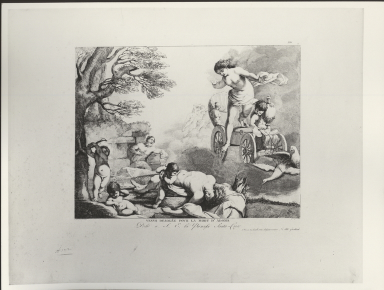 Questa raccolta è preceduta da un frontespizio del Piranesi stesso e comprende dodici tavole incise dal Bartolozzi, tre dal Piranesi stesso, sei incise da Giovanni Ottaviani, due da James Nevay ed altre di diversi autori. La Pinacoteca possiede vari esemplari di tutti questi autori. L'incisione, anche se inserita in questo contesto, secondo Bagni (1990, p. 97) non è derivata da un disegno del Guercino, potrebbe essere ispirata da una terracotta raffigurante Diana ed Endimione dello scultore bolognese Giuseppe Maria Mazza (Bagni 1990, tav. 77). Bagni (1990, tav. 75) rende noto anche un disegno del "falsario" che riprende un dettaglio dell'incisione.