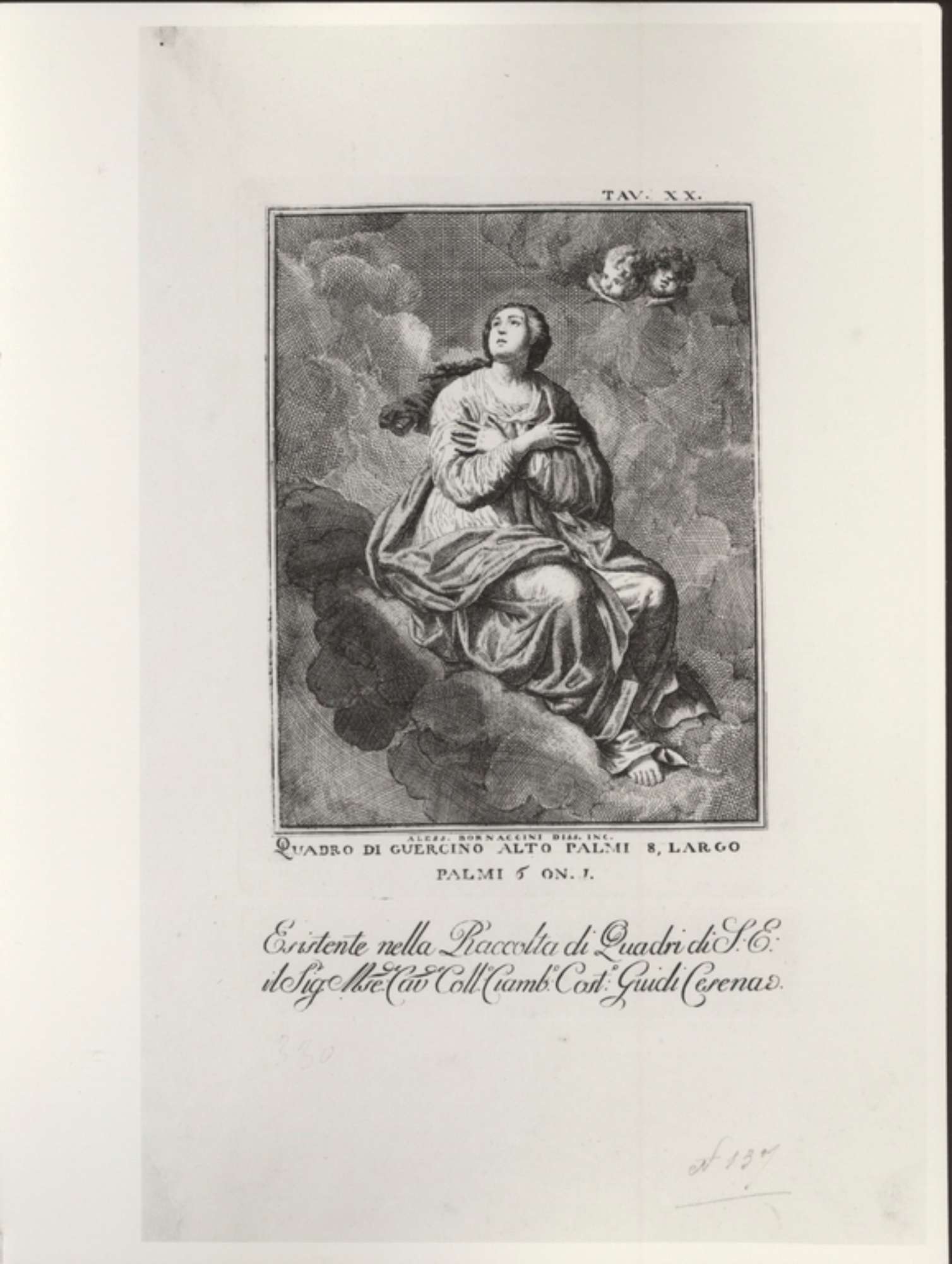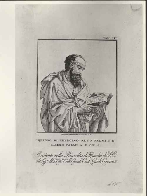 L'incisione riprende un dipinto ritenuto erroneamente del Guercino ma evidentemente di un altro autore.