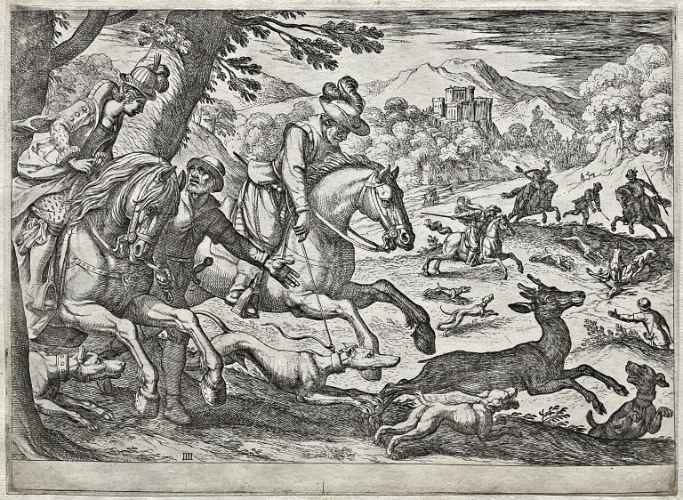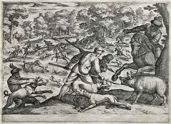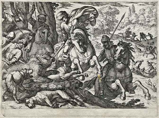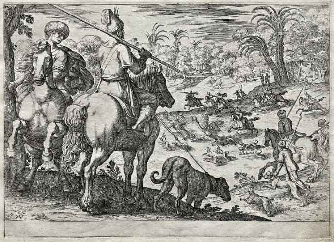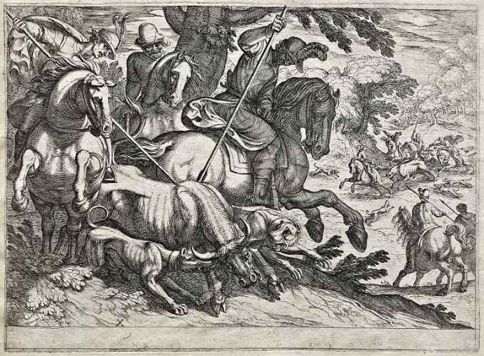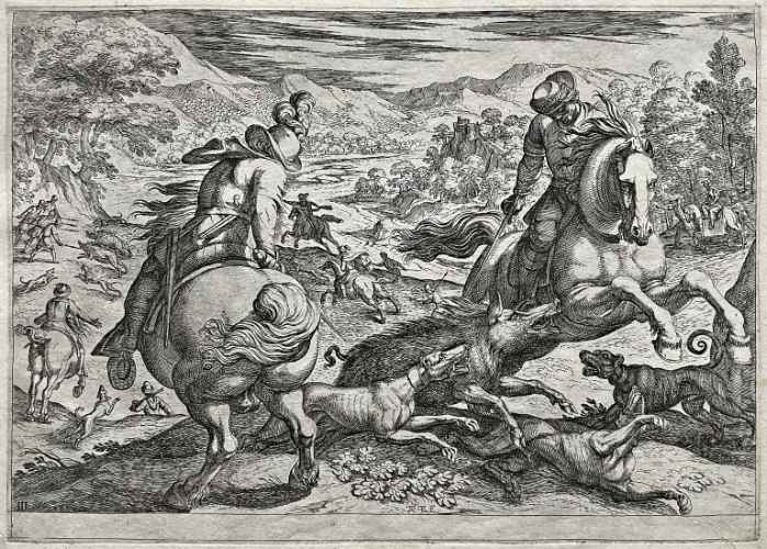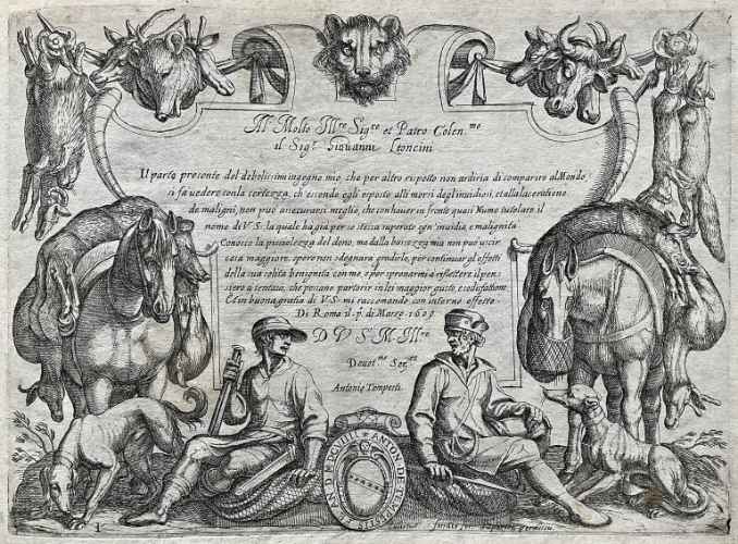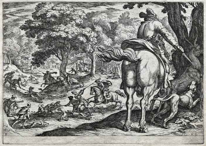 Tra il 1589 ed il 1627 il Tempesta incise 1460 lastre di cui alcune andarono distrutte agli inizi dell' Ottocento perché ritenute di scarso interesse artistico, ma in gran parte tuttora conservate presso la Calcografia Nazionale. Anche questa "battaglia" riprende la tipica impostazione tempestiana – studiata in seguito dal Callot o dal Della Bella – del primo piano ricco di figure ed animali, in prevalenza cavalli perché preferiti dall'artista per il loro calcolabile dinamismo monumentale qui reso mediante un nervoso scatto in avanti del cavallo al centro della scena. Al di là del primo piano segue un vasto addensarsi di particolari fisionomici ed oggettistici, trascritti con un attento gusto niellistico.