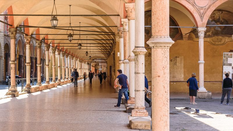 Finché, nel 1288, uno Statuto del Comune di Bologna rese non solo legale ma persino obbligatorio costruire un portico per ogni abitazione, affidandone la pulizia e la manutenzione agli abitanti e mantenendo pubblica la proprietà del suolo. Così facendo, la città si dotava di un sistema di camminamenti riparati, strategici non solo per far fronte alla crescente richiesta di spazi abitativi, ma anche per isolare il pianterreno delle abitazioni dall’affaccio diretto sulla strada e per ricavare luoghi privilegiati per le attività mercantili.
