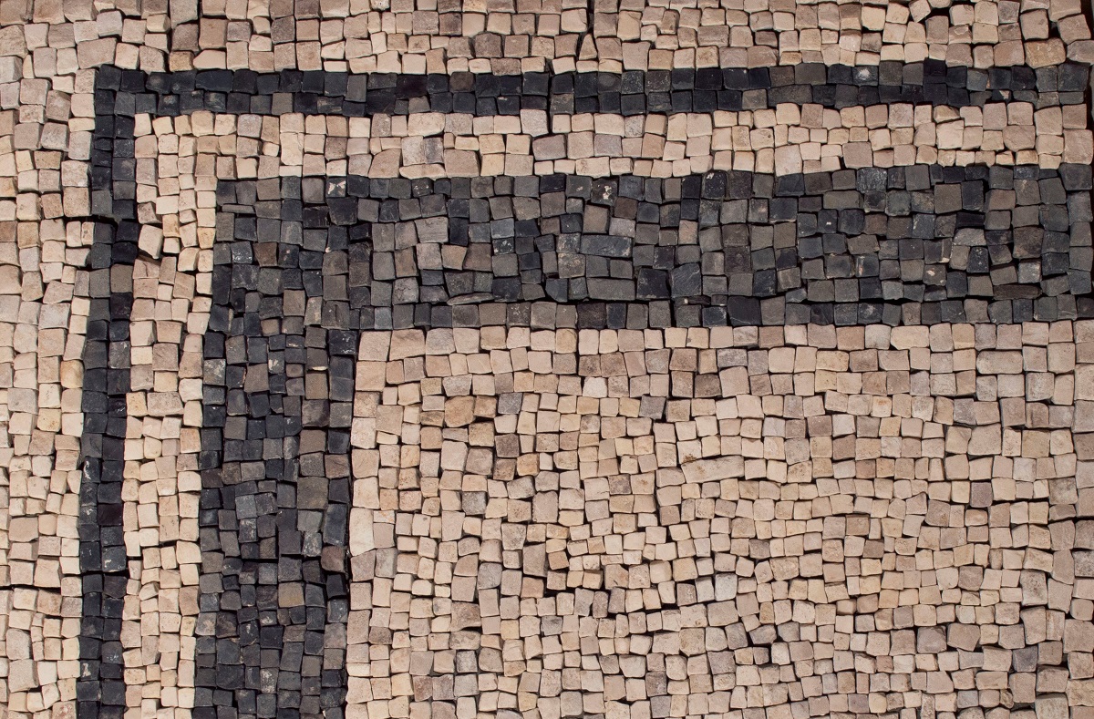 Sito romano di Ponticella/Siberia: fr. di pavimentazione in mosaico a tessere bianche e nere