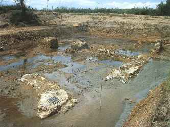 Nel 1972 furono individuate due delle murature, purtroppo spoliate fino alle fondazioni, che correvano parallele fra loro e, all’esterno di queste, un altro muro in fondazione, che indicava forse la presenza di un edificio successivo affiancato al primo.